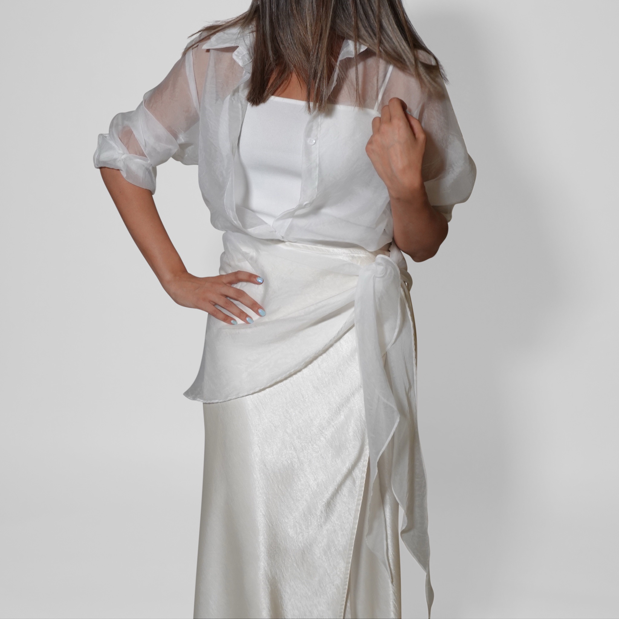 •Sheer organza shirt with button-down design
