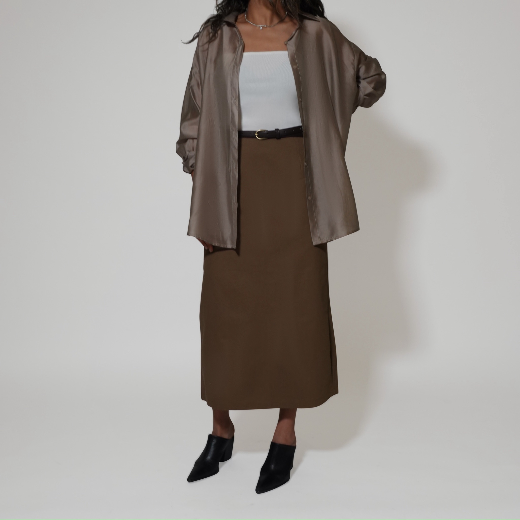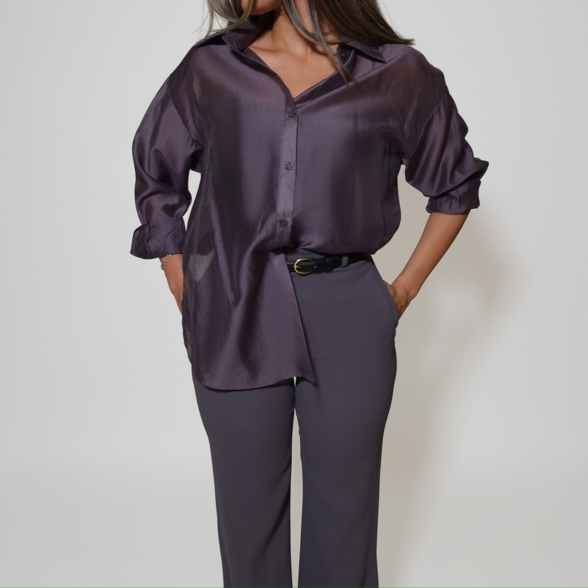 This modern shirt features a fluid silhouette crafted from lightweight, silky fabric that drapes beautifully for a refined look. The subtle sheen adds a touch of elegance, while the relaxed fit ensures all-day comfort.