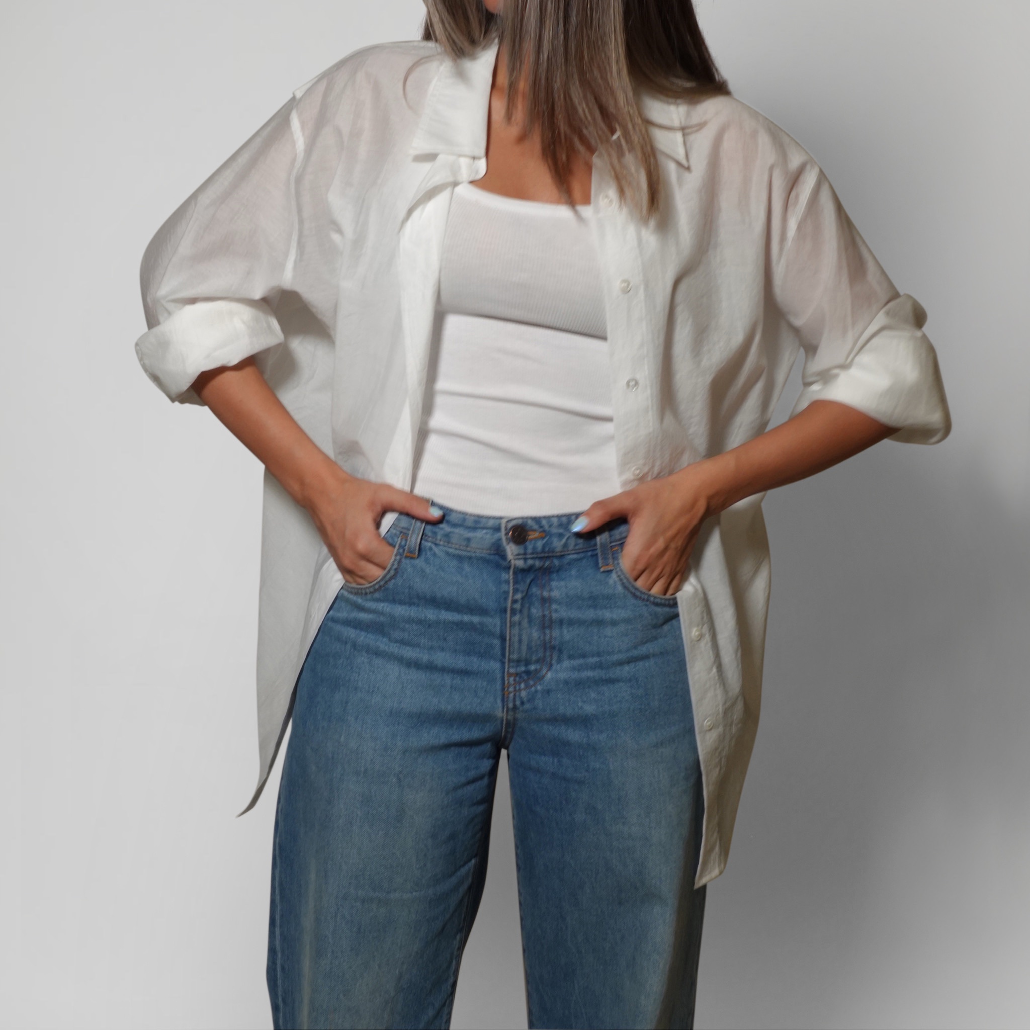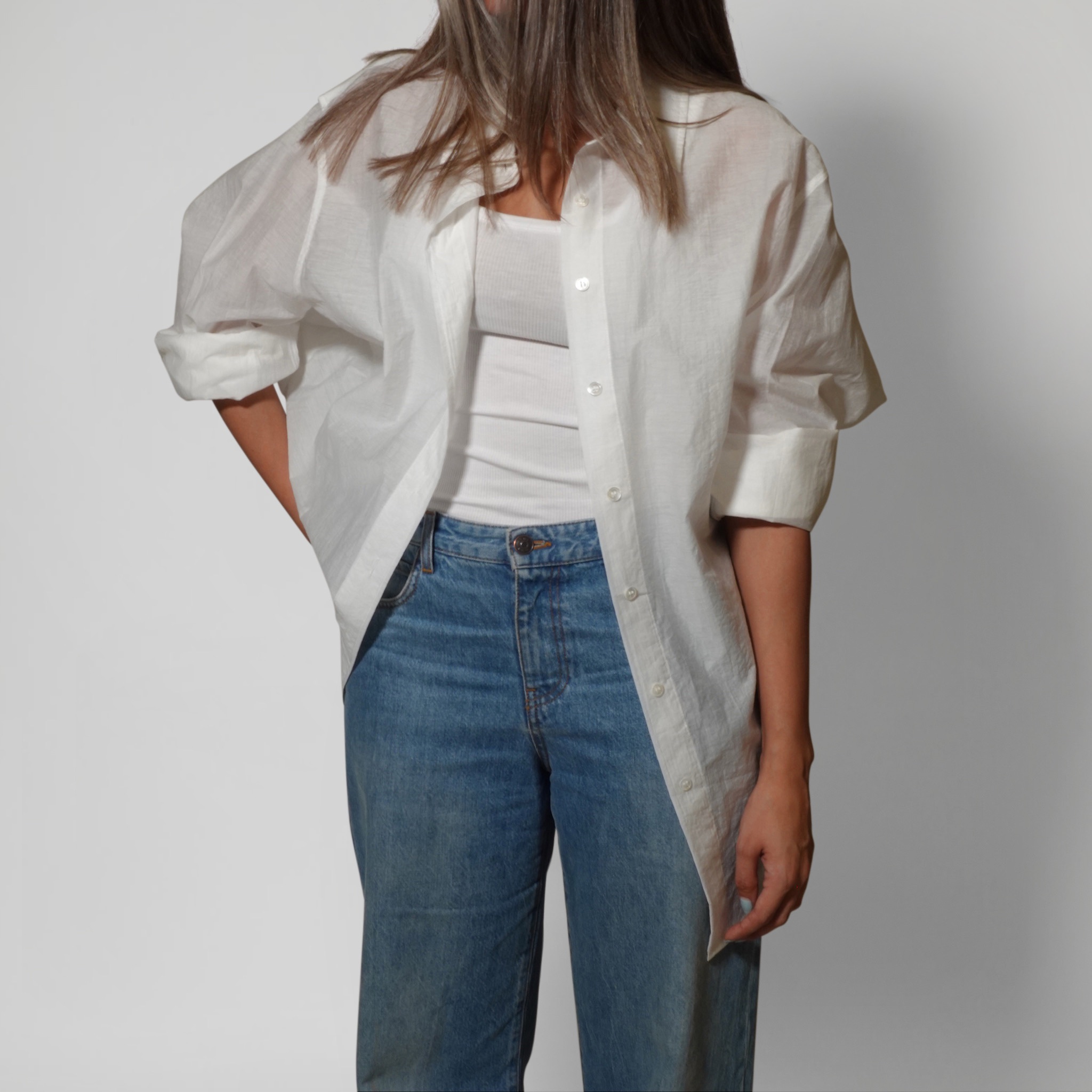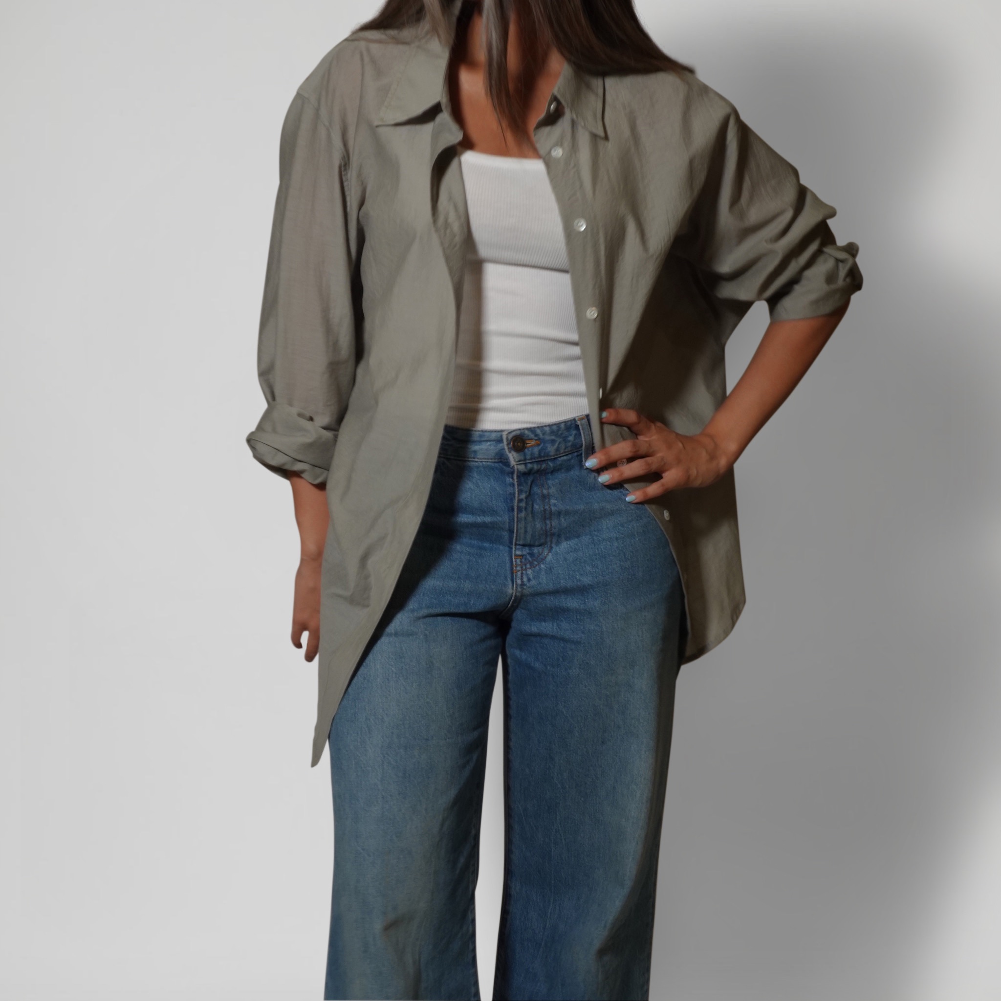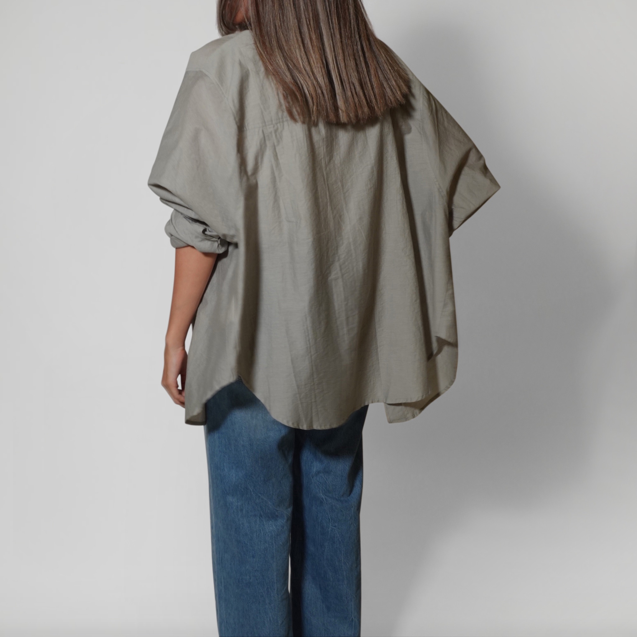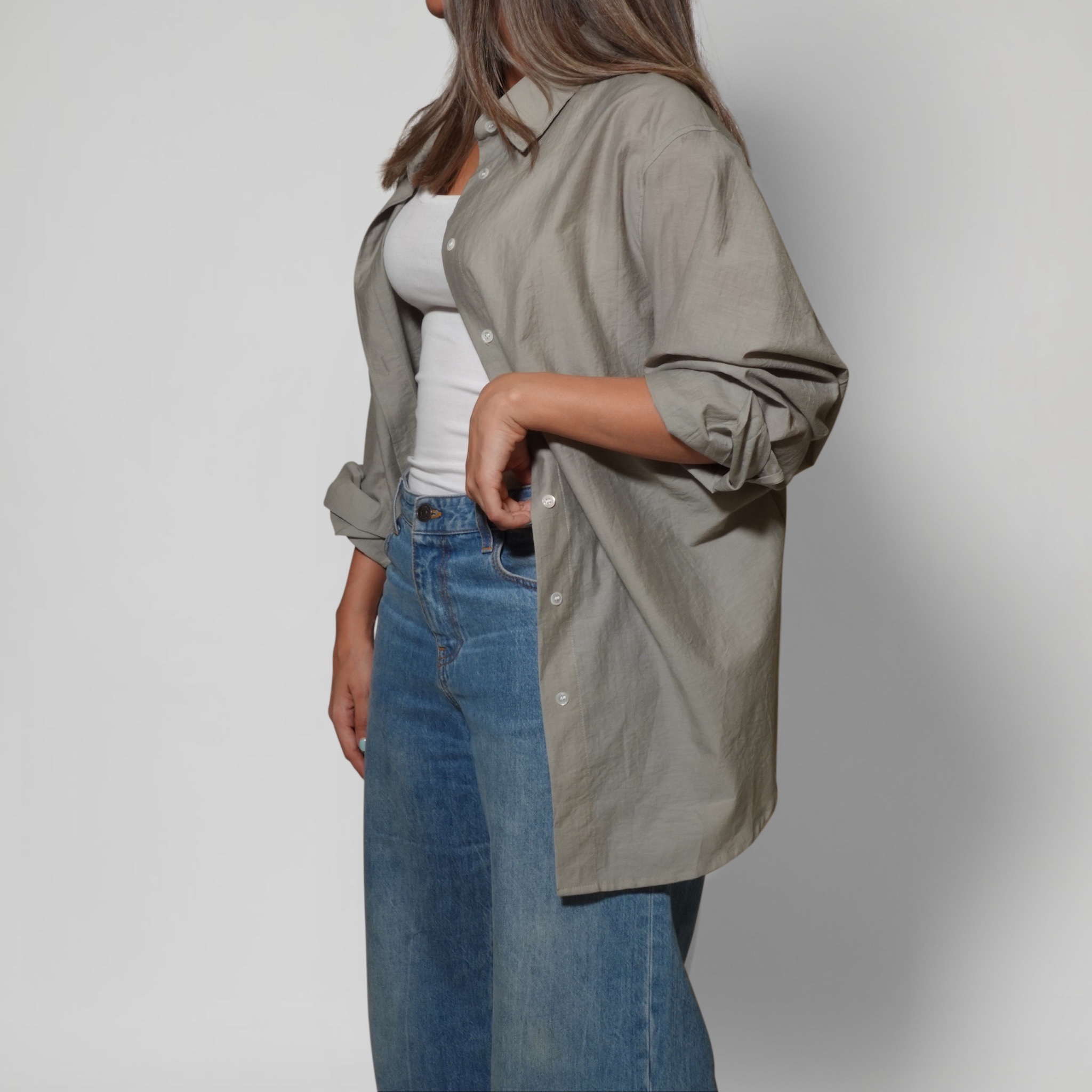 This oversized button-down shirt is a versatile staple designed for effortless style. With its relaxed fit, dropped shoulders, and fluid drape, it combines comfort with a modern, minimal look. The classic collar and button-front design make it easy to wear open as a lightweight layer or closed for a polished silhouette.
